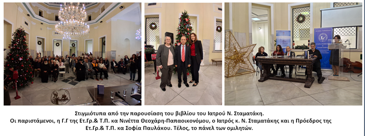 Το Σάββατο 8 Δεκεμβρίου 2018 και ώρα 7μμ, στη Δημοτική Πινακοθήκη Πειραιά και σε μια ζεστή και όμορφη ατμόσφαιρα, παρουσία φίλων του μέλους μας Σωτηρίας Λέκκα, αλλά και μελών της Εταιρίας, έγινε η παρουσίαση του νέου βιβλίου της με τον τίτλο: «Στοχευμένη Ευθανασία».